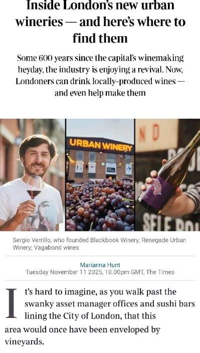 We’re in The Times - read more on this latest piece on London’s Urban Wineries.